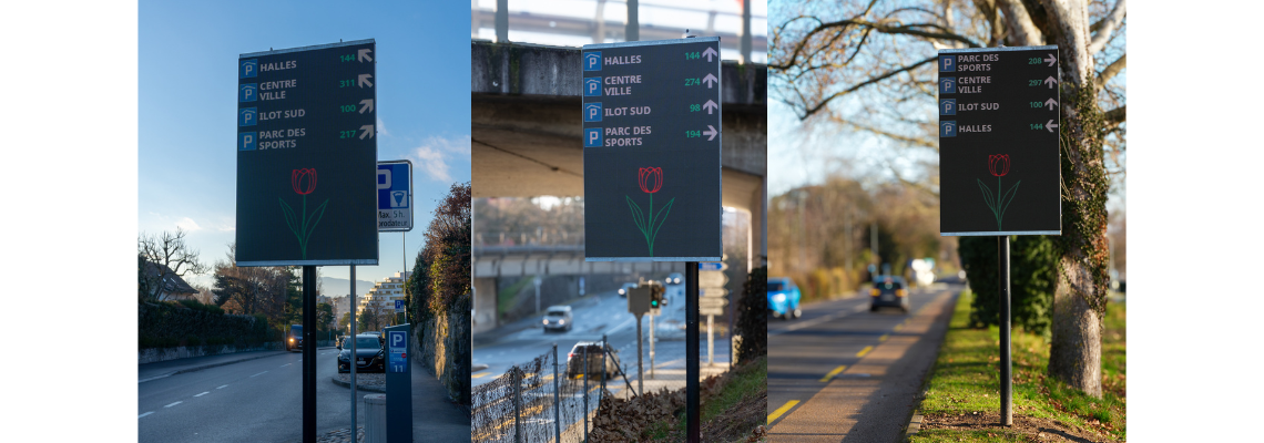 Nous avons récemment installé 3 panneaux LED de téléjalonnement en Ville de Morges. Cette solution permet d’orienter le trafic vers les places de stationnement disponibles et de faciliter l’accès au centre-ville.