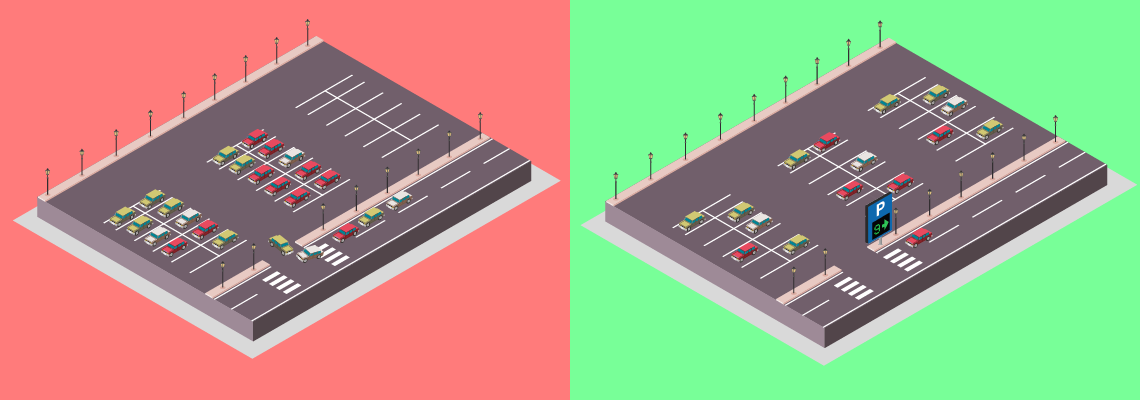 Notre solution de comptage de place de parc couplée à des afficheurs lumineux dynamiques, permet d'orienter les véhicules vers la place libre la plus proche.